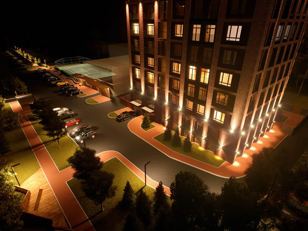 В границах отведенного земельного участка для жителей многоквартирного жилого дома предусмотрены площадки для отдыха и занятия спортом, площадки для игр детей и отдыха взрослых, устройство подъездов, проездов и тротуаров, установка малых архитектурных форм, озеленение территории посадкой деревьев, кустарников, газонной травы. Покрытие проездов – асфальтобетонное, тротуаров – из брусчатки, площадок и дорожек – брусчатка. Установлено ограждение по периметру земельного участка.